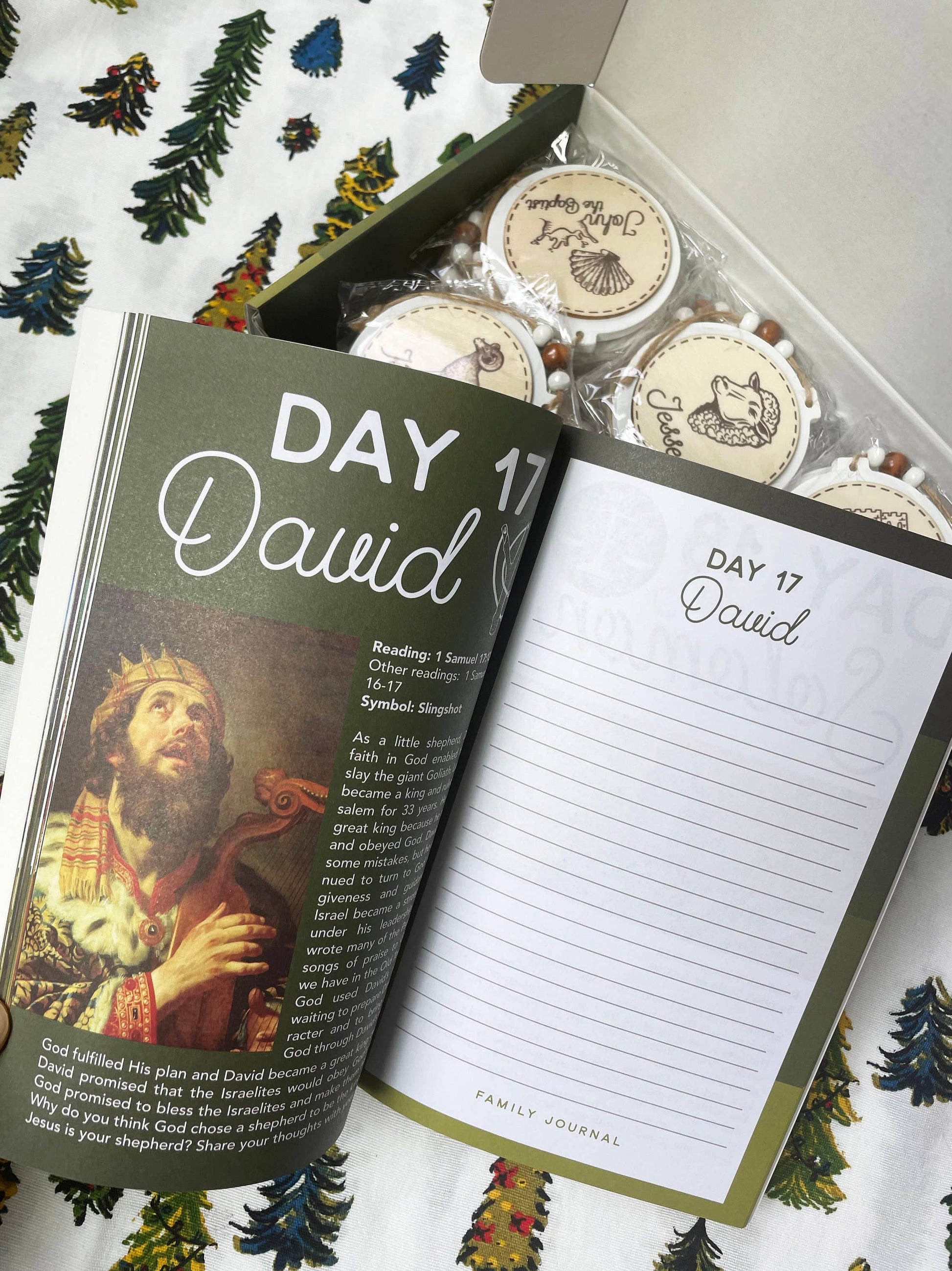 Now included with your purchase is the family journal version of the booklet (with reflections and journal pages for every day and DIY paper ornaments for your kids).