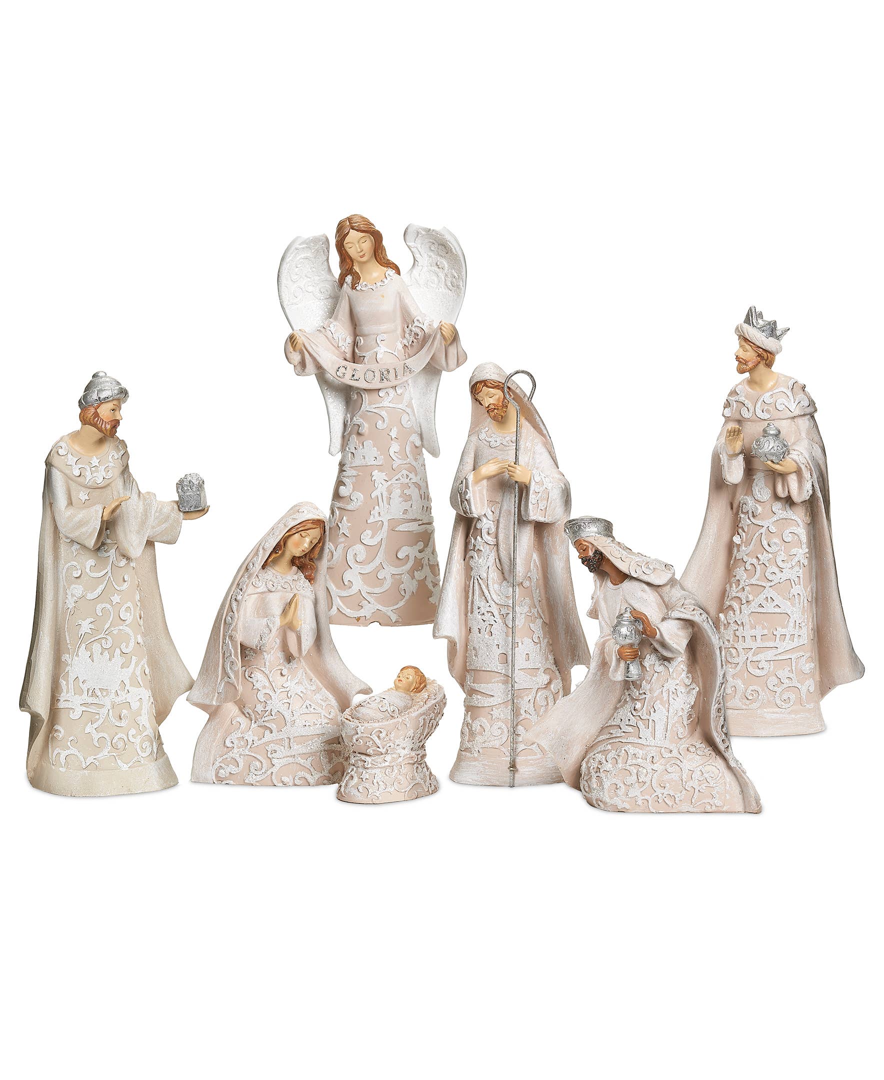 Celebrate the true spirit of Christmas with this exquisite 7 Piece Nativity Set by Roman. Crafted from a durable resin/stone mix, each figure stands approximately 7.5" tall and features a delicate paper cut style design, including a serene angel to complete the scene. This timeless set brings warmth and reverence to your holiday décor. Perfect for homes, churches, or as a meaningful gift during the holiday season. Details: Material: Resin/Stone Mix Height: 7.5" (approximate per piece) Pieces: 7