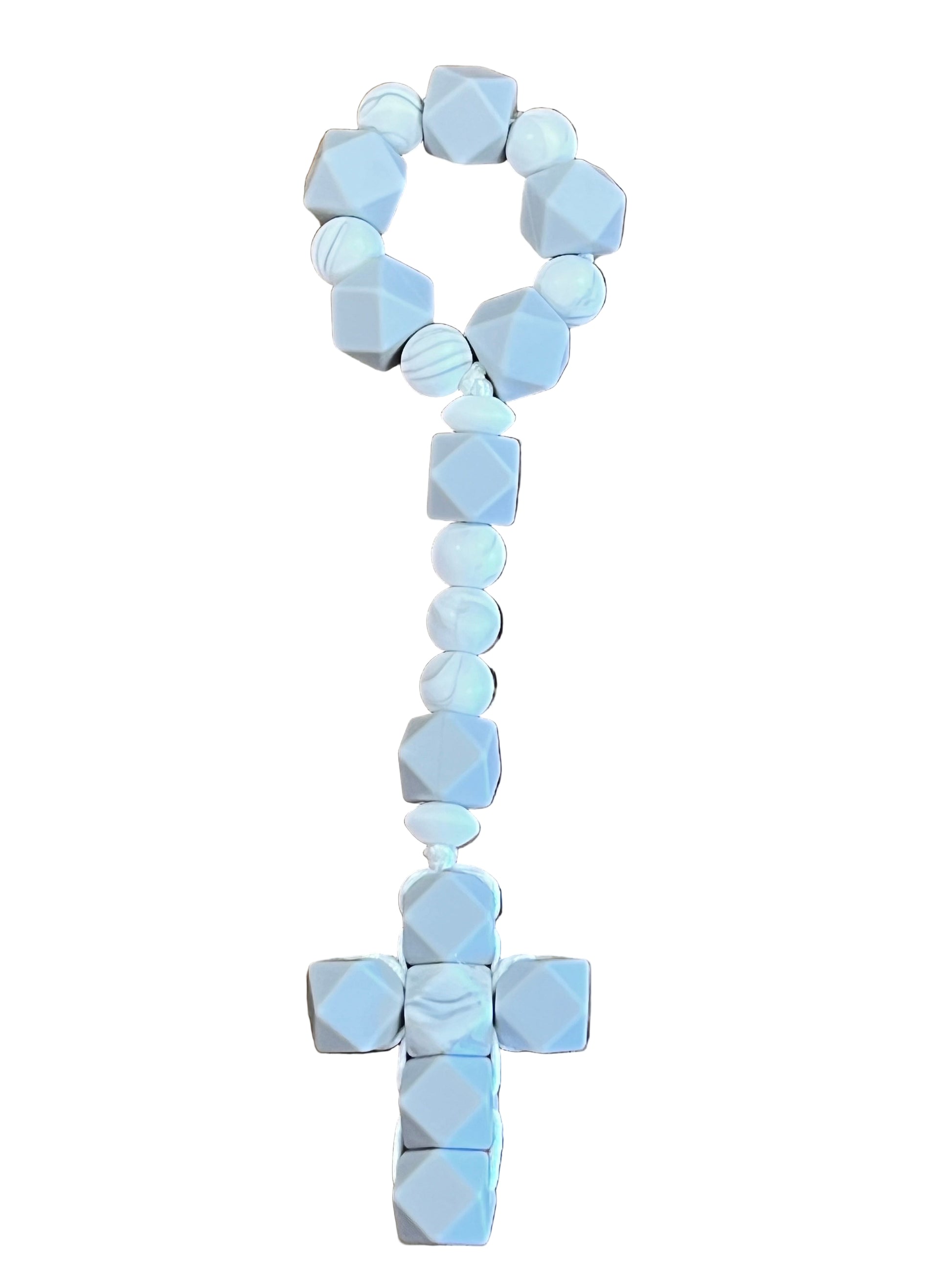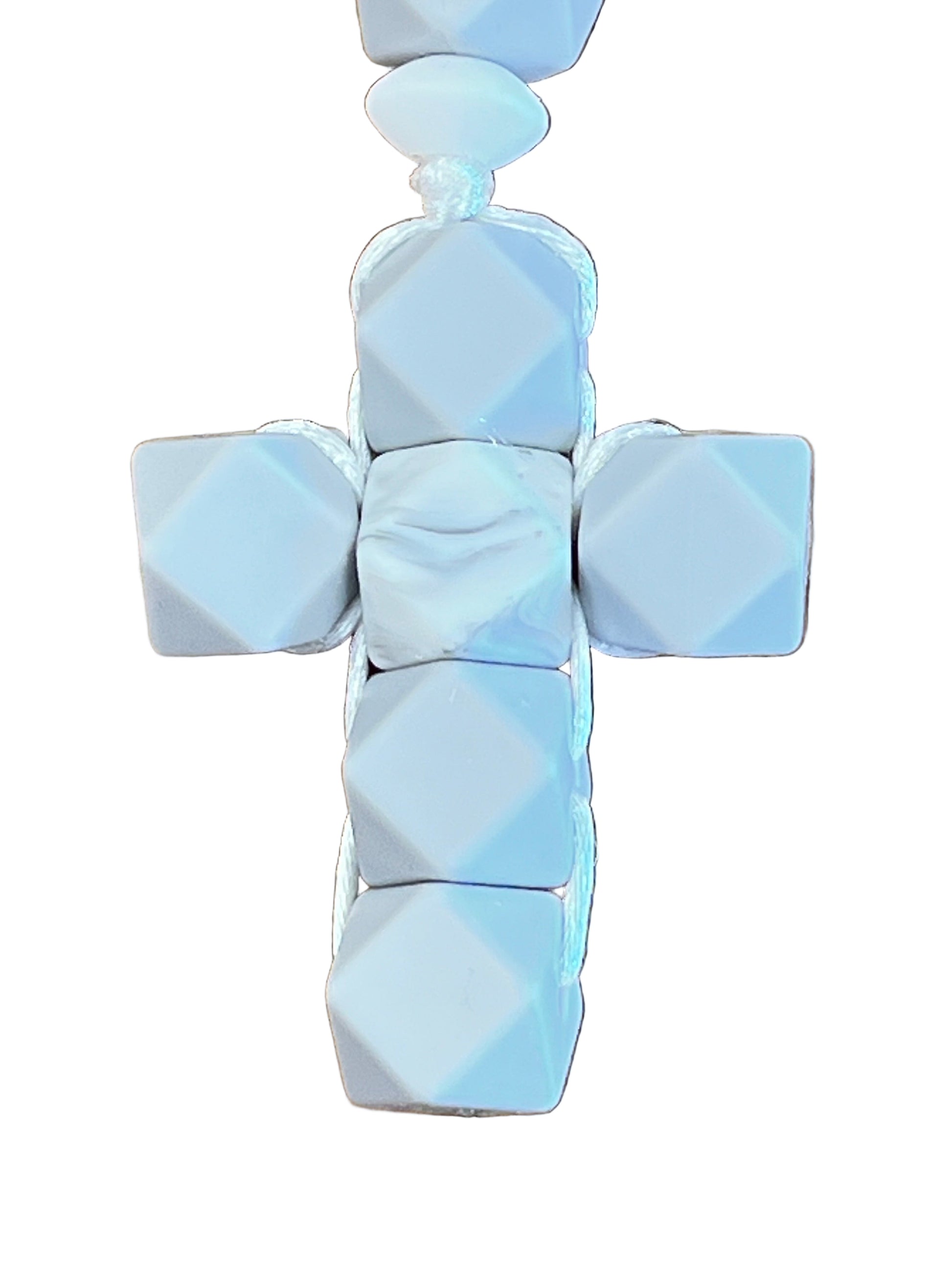 St. John Paul Decade Teether features grey and white beads with a grey cross.