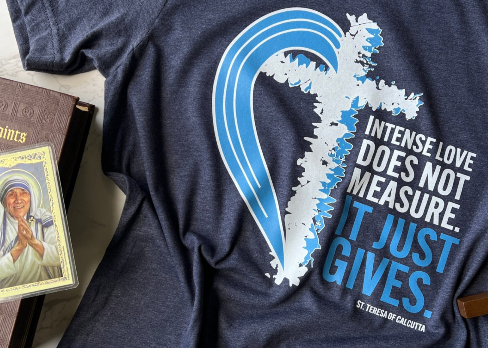 This beautiful Saint Teresa of Calcutta design was featured in July of our very First Year! This tee has been elusive to say the least, but is now available in the shop for a limited time only!